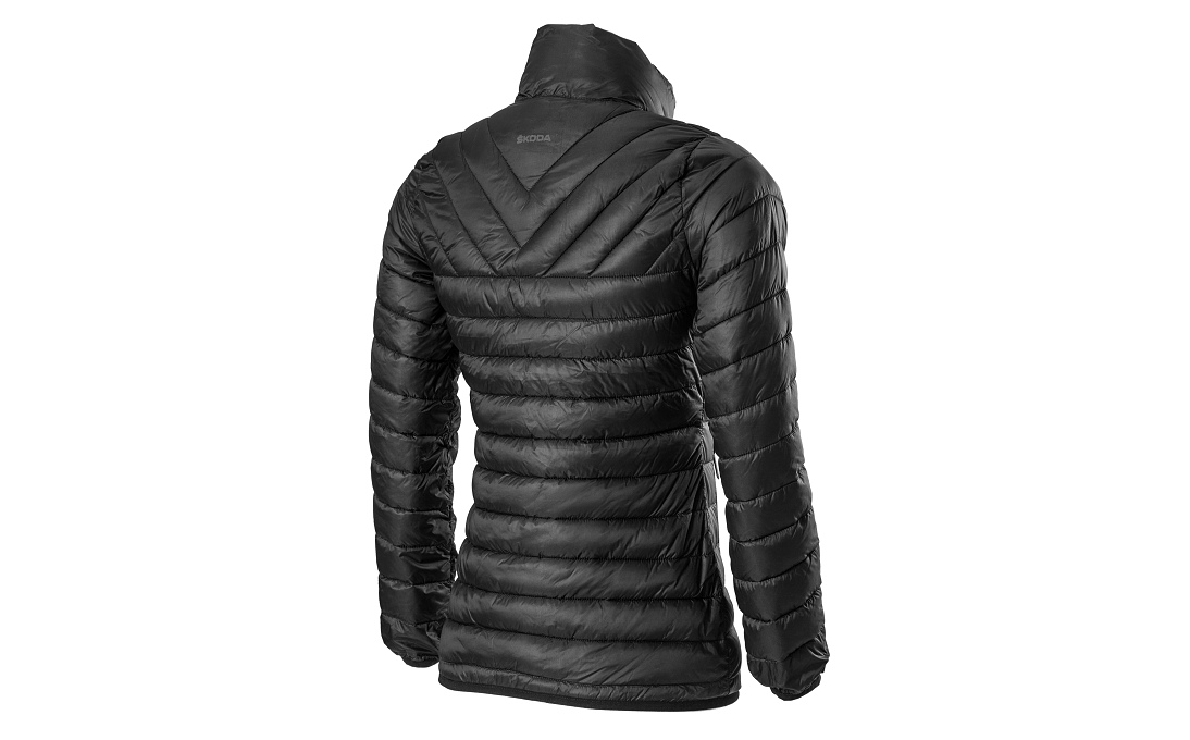 The ultralight women’s jacket in a sporty design packable in an attached pouch. The black jacket has contrast zippers, higher collar with chin protection, breast pocket with an opening for your headphones and is made of waterproof materiál. Subtle ŠKODA branding on the back.