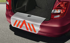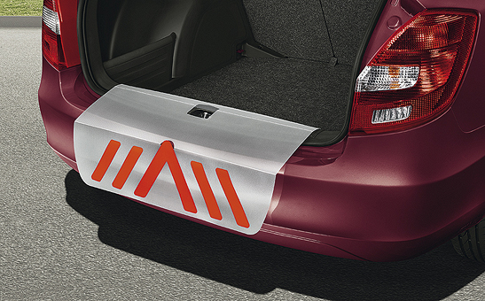Protect your rear bumper and the loading edge of the luggage compartment of your ŠKODA FABIA and FABIA COMBI from damage during loading the luggage. Protective film, made of high-quality polypropylene, is fixed under the boot carpet and laid vertically over the bumper. This easy measure prevents both the bodywork and loaded items from being damaged or getting dirty. Triangular reflective stripes on the protective film enhance the visibility of the parked vehicle. When you don’t need the film, it can be folded and stored under the luggage compartment floor.