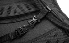 Chrbtová časť je vybavená pohodlným polstrovaním z EVA materiálu, ktoré zvyšuje komfort pri dlhšej jazde. Batoh pevne drží na tele vďaka hrudnému a bedrovému popruhu s prackou. K praktickým detailom patrí aj horné ucho na zavesenie.