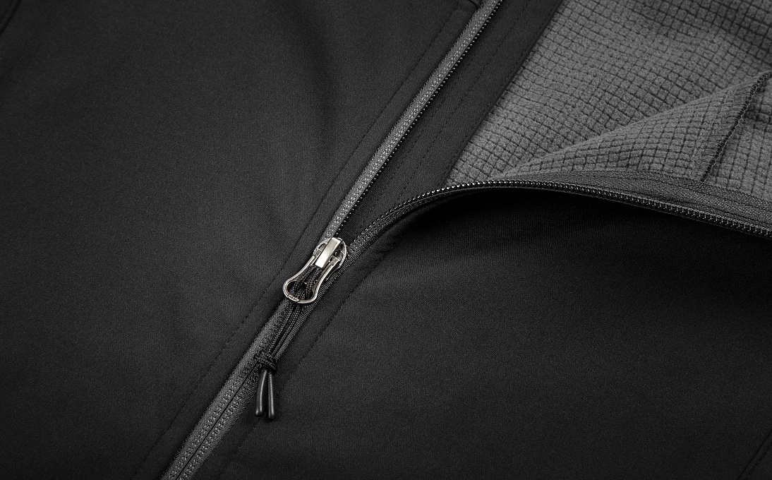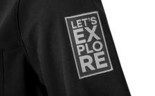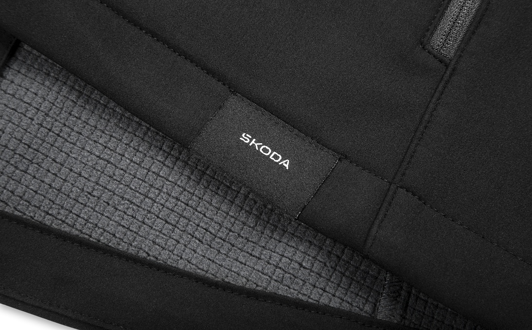 Antracitová farba, značkové zipsy YKK, tkaný label Škoda a nášivka Let's Explore dodávajú bunde moderný outdoorový vzhľad.