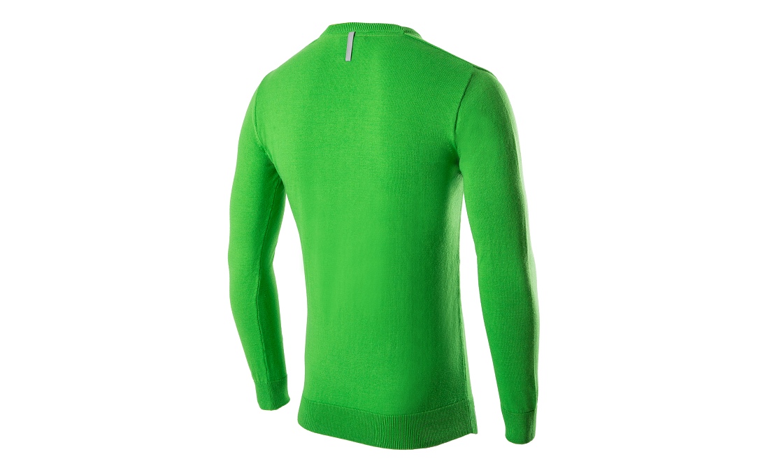 Pánsky zelený sveter s véčkom v zelenej farbe ŠKODA. Štítok s logom ŠKODA je umiestnený na prednej strane lemu. Vzadu za krkom je prišité strieborné reflexné pútko.