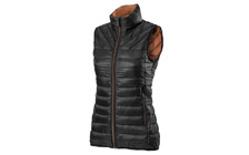 Ultraľahká dámska zimná vesta v športovom dizajne, ktorú je možné zbaliť do príručného vaku. Čierna vesta má kontrastne prešité zipsy, vyšší golier s prekrytím zipsu pri brade, prieramky zakončené gumou a náprsné vrecko s vývodom pre slúchadlá. Decentné logo ŠKODA na zadnom diele.